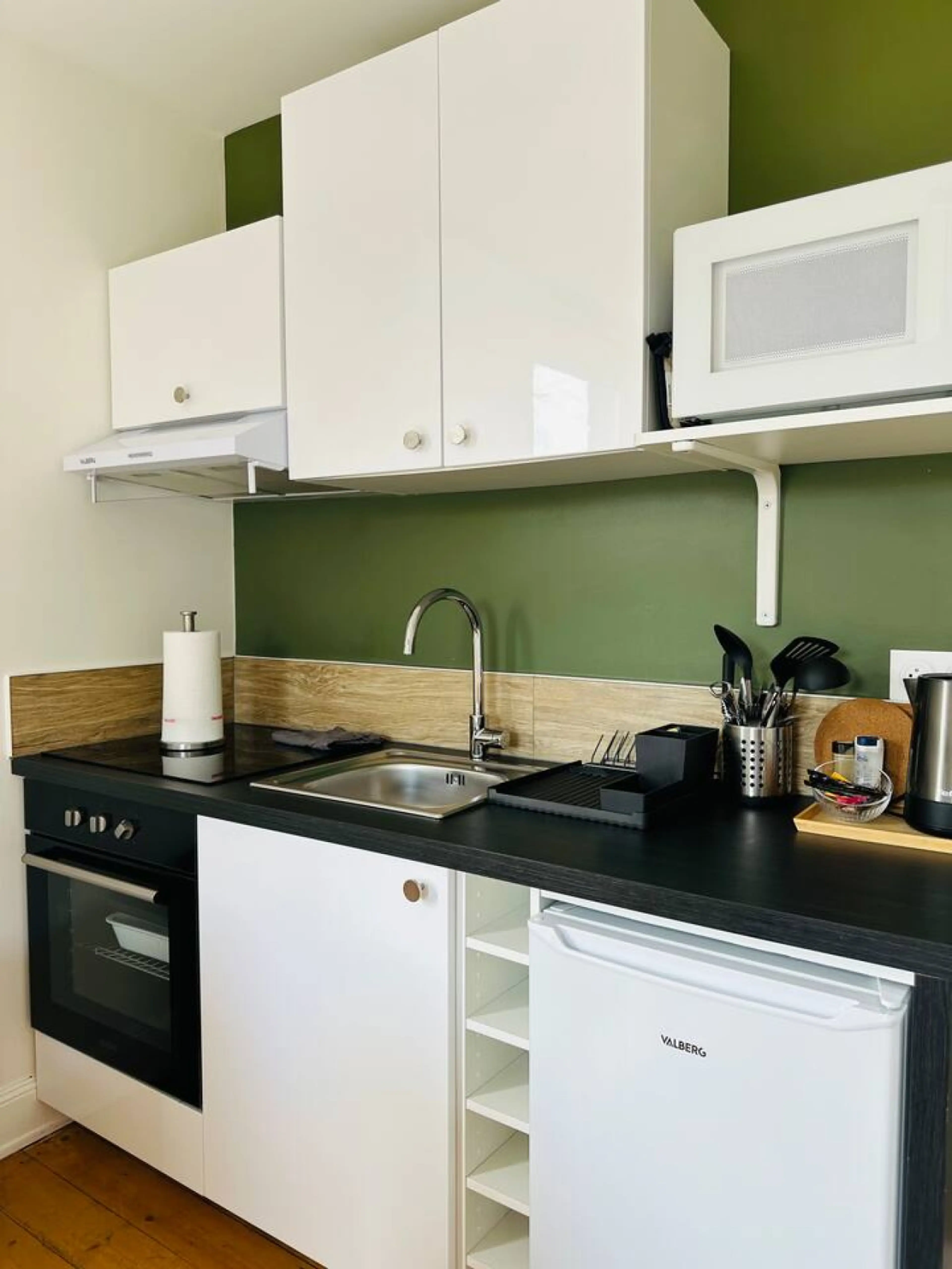 Positive: Le choix des studios, de plein pied, à l' étage et de différentes tailles. L' emplacement dans une rue résidentielle avec la possibilité de se garer en face ou très proche. Taille idéale pour deux personnes même si la chambre est plus grande que le salon. Rien ne manque pour passer un bon séjour.